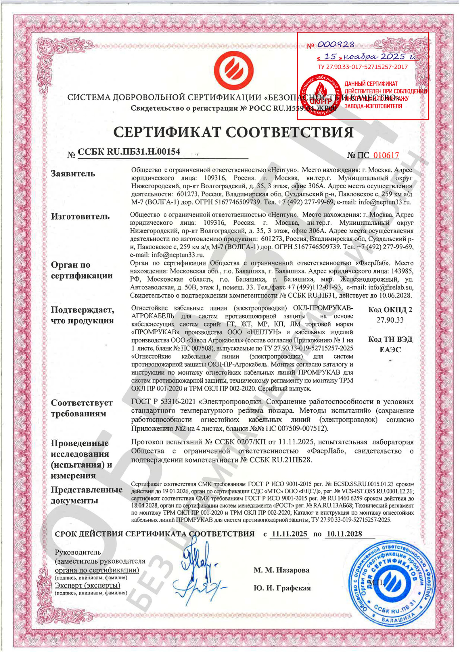 СЕРТИФИКАТ СООТВЕТСТВИЯ ОКЛ-ПРОМРУКАВ-АГРОКАБЕЛЬ 783 Кб